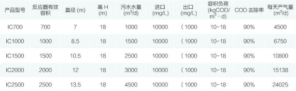 IC厭氧反應器由于存在著強大的內循環、傳質效果好、生物量大、其容積負荷遠比普通的UASB  反應器高, 一般可高出3倍左右。處理高濃度有機廢水,當COD 為10000-15000mg/L 時,容積負荷率可達10-18CODm3·d。